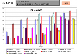 Si fece un’indagine e si raccolsero i valori utilizzati in ogni nazione europea per vari livelli di tensione, dalla bassa tensione alla AAT; tutti risposero inviando i valori utilizzati per la DL (inizio della pratica dei lavori sotto tensione) e il valore più basso, tra quello inviato, fu preso come riferimento per la tabella della EN 50110-1 (Ed. 2).